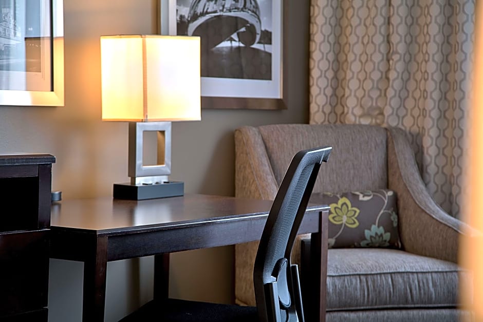 This room features modern décor and comfortable amenities, including plush bedding and a large work desk with ergonomic chair.